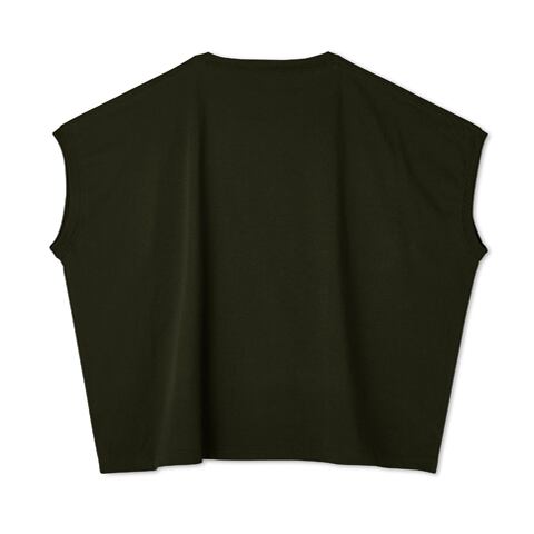 ゆとりのあるシルエットの、ワイドなスリーブレスTシャツです。
